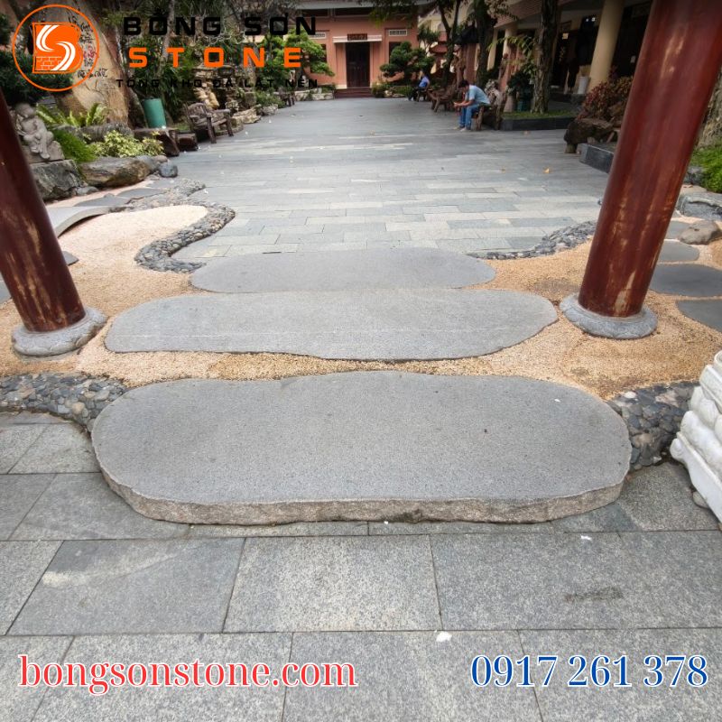 Ứng dụng thực tế: Thích hợp làm lối đi trên thảm cỏ, đường dạo quanh hồ cá Koi, tạo không gian sân vườn tự nhiên và sinh động.
